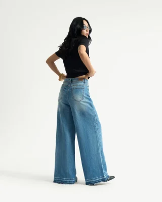 • Quần jean ống rộng (wide leg, baggy jean): Mang lại sự thoải mái, phóng khoáng và cá tính. Quần jean ống rộng dễ dàng kết hợp với áo croptop, áo sơ mi hoặc blazer, tạo nên phong cách thời thượng.